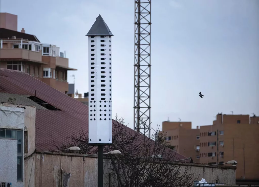 Desde hace dos meses, en las inmediaciones de la estación intermodal de Almería, una nueva silueta se ha sumado al entorno de edificios que la rodea. Es una torre de 12 metros de altura y un metro de ancho que ha sido elevada por Adif, el administrador de infraestructuras ferroviarias, para garantizar la supervivencia de la colonia de vencejo pálido, cuya presencia